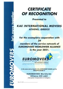 - Euromovers Certificate of Recognition 2021, Athens Greece